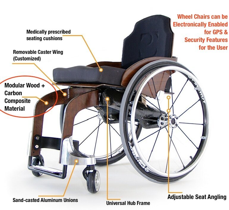 A product designer* created this modular wheelchair that could adapt to changes in physical dimensions of a human being over time. The chair is also intelligent [GPS enabled] and has multi-material features